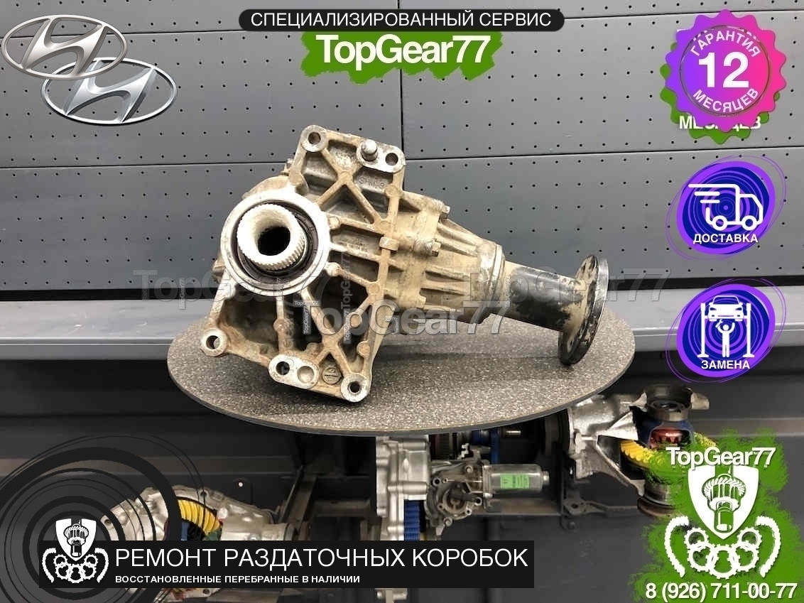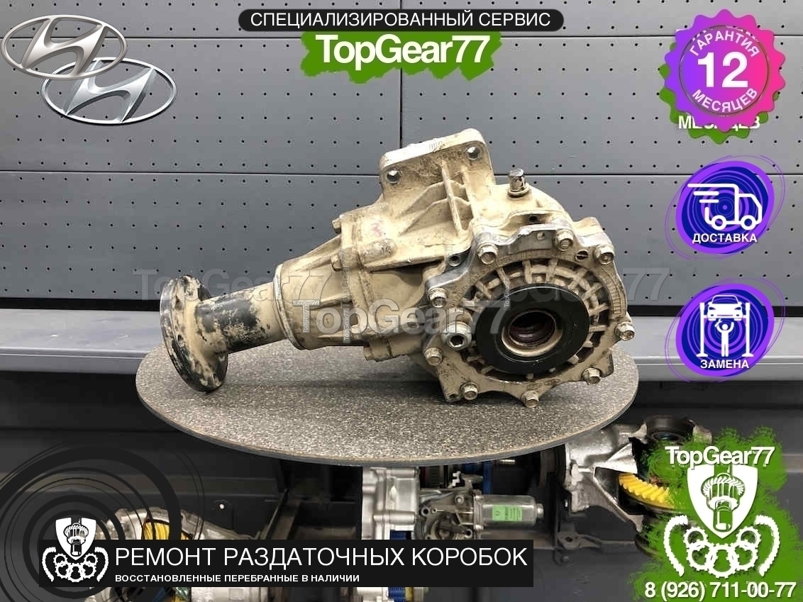 Восстановленная (полностью перебранная) раздаточная коробка (раздатка) для Hyundai Santa Fe III 2012-2018.
