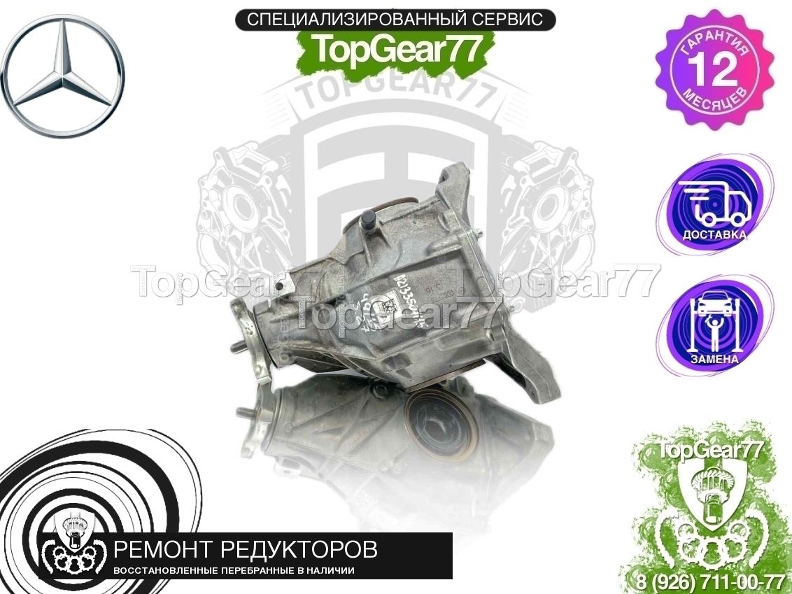 Задний редуктор мост Mercedes CLS C257 восстановленный (перебранный) БУ с передаточным числом 3,266|3,27, ширина корпуса редуктора 24 см, фланец с 3 лучами, номер корпуса A2133510005, номер задней крышки: A2133510008. Устанавливается на модификациях: 253942, 253342, 253315.