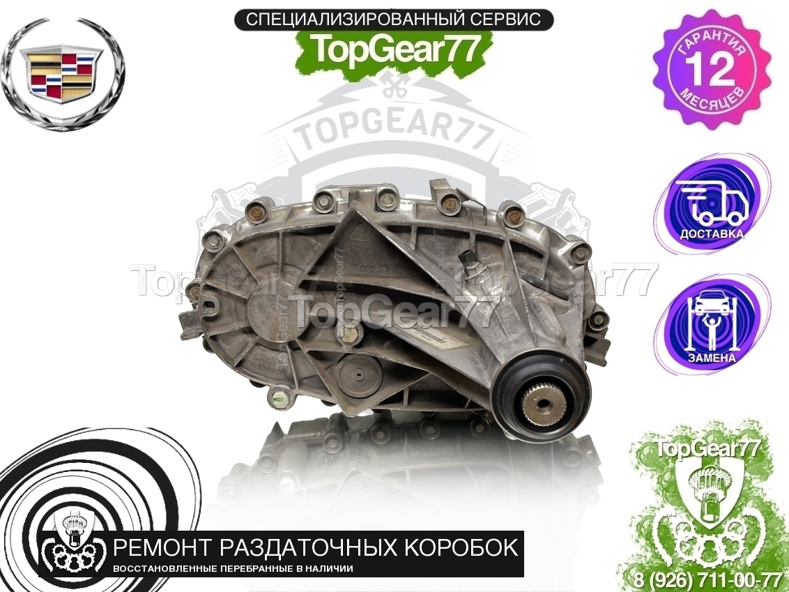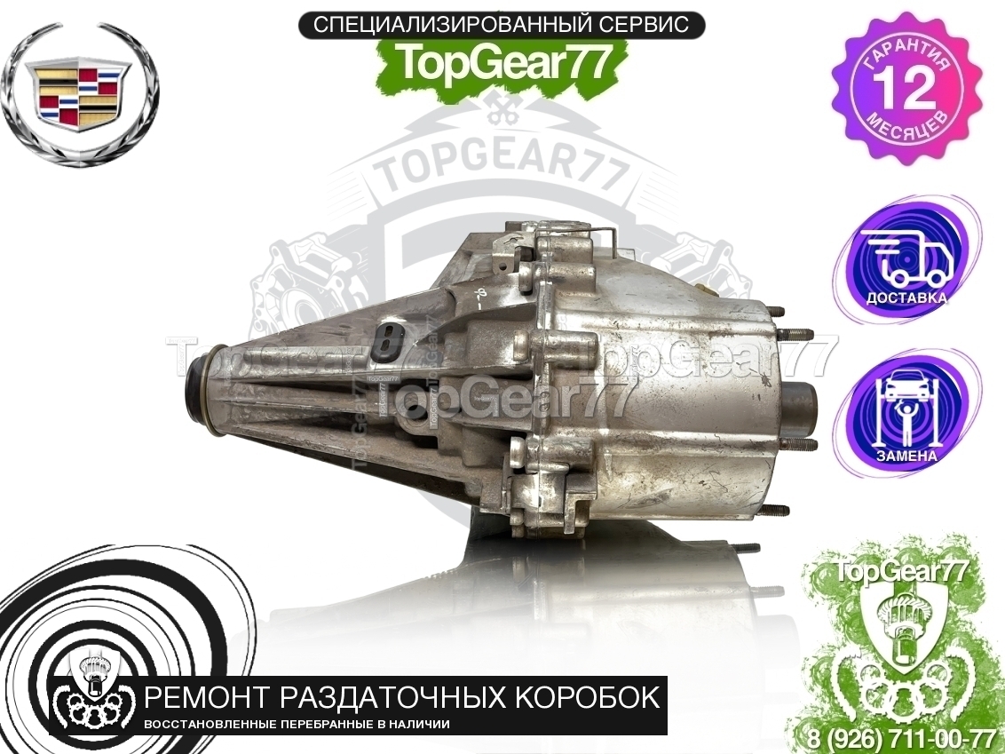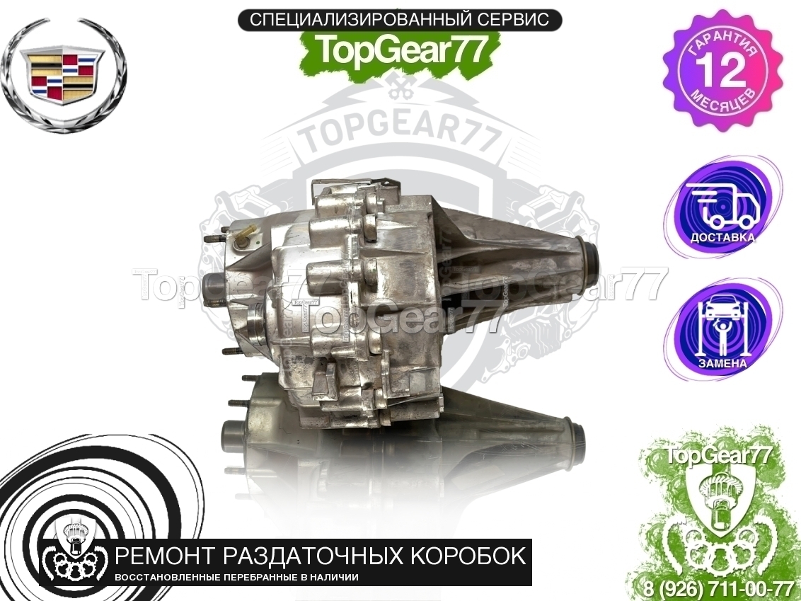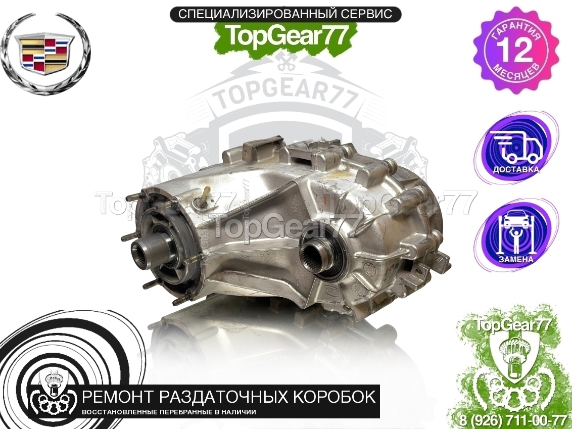 Восстановленная (полностью перебранная) раздаточная коробка (раздатка) для Cadillac Escalade II GMT800 5.3i 6.0i 2001-2006, диаметр вала - 49.31 мм. и 27 шлиц (с фаской).