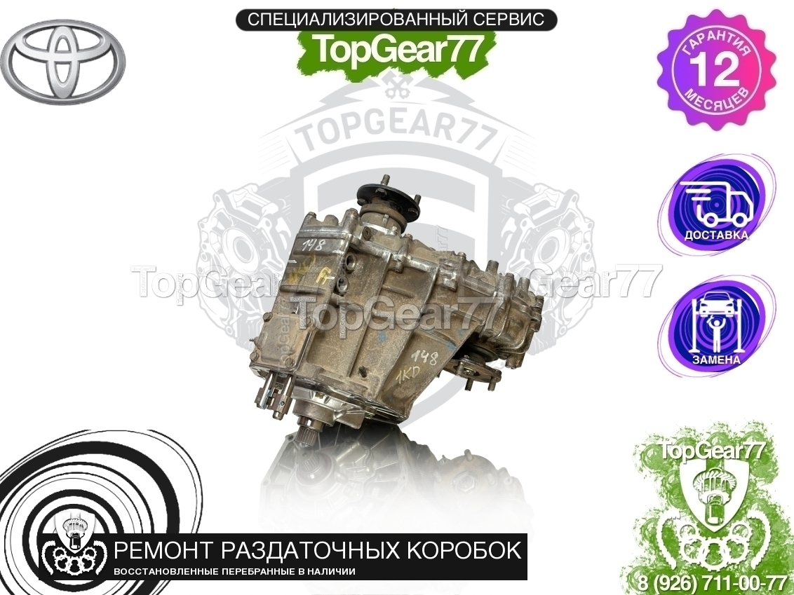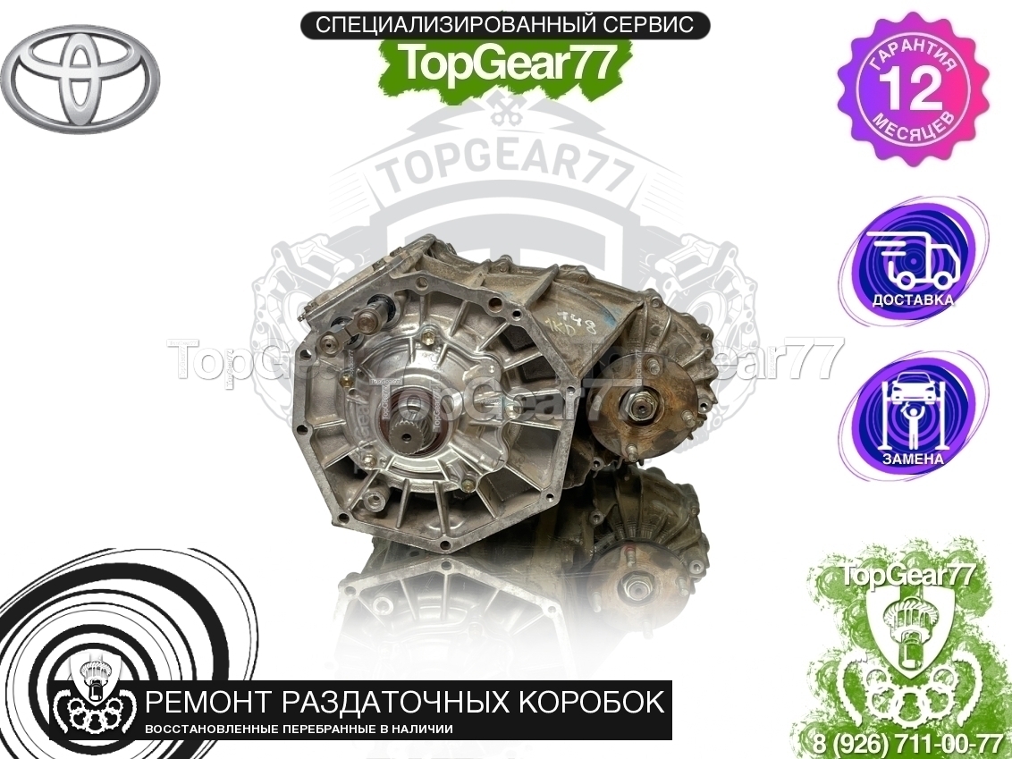 Восстановленная (полностью перебранная) раздаточная коробка (раздатка) для Toyota Land Cruiser Prado 120 2.7i 2002-2009.