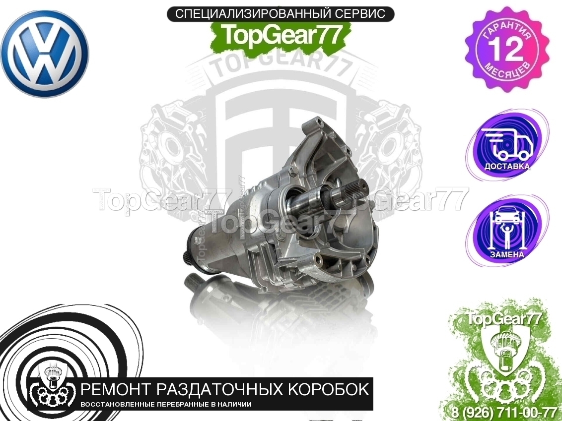 Восстановленная (полностью перебранная) раздаточная коробка (раздатка) для Volkswagen Transporter T6 Рестайлинг 2019-2025 2.0 TDI.