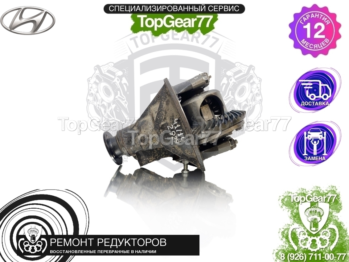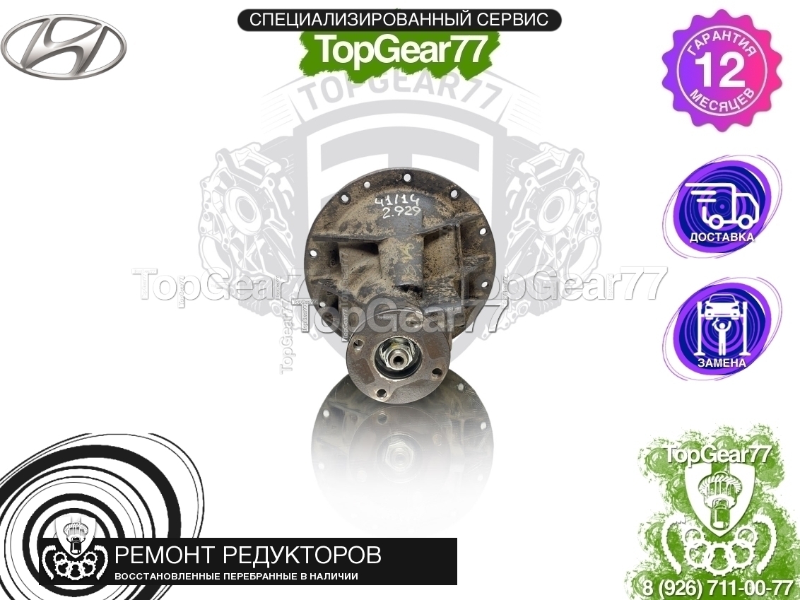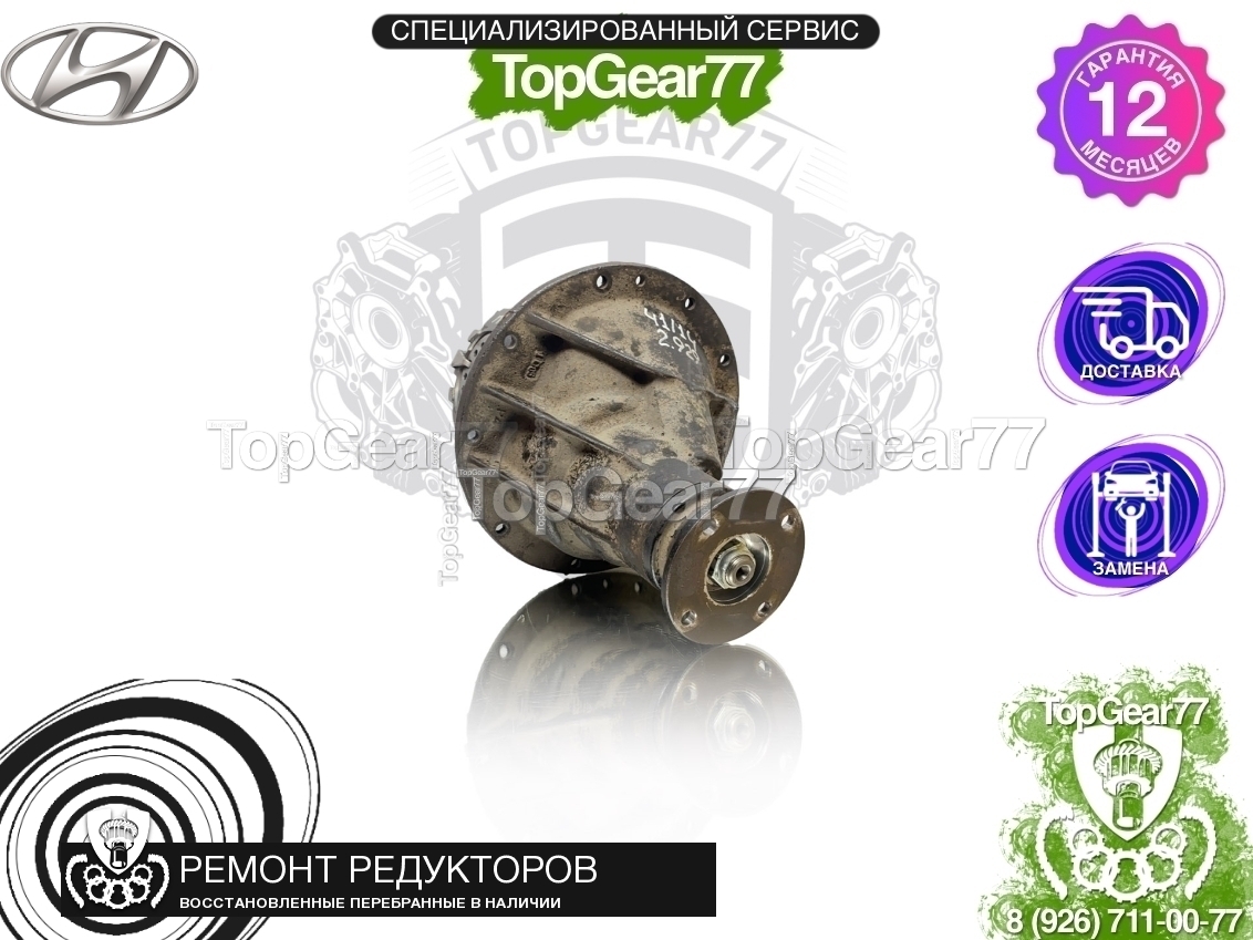Продается перебранный (восстановленный) задний редуктор (мост) для Hyundai H-1 II Рестайлинг 2.5D 2015-2018, с передаточным числом 2,929.