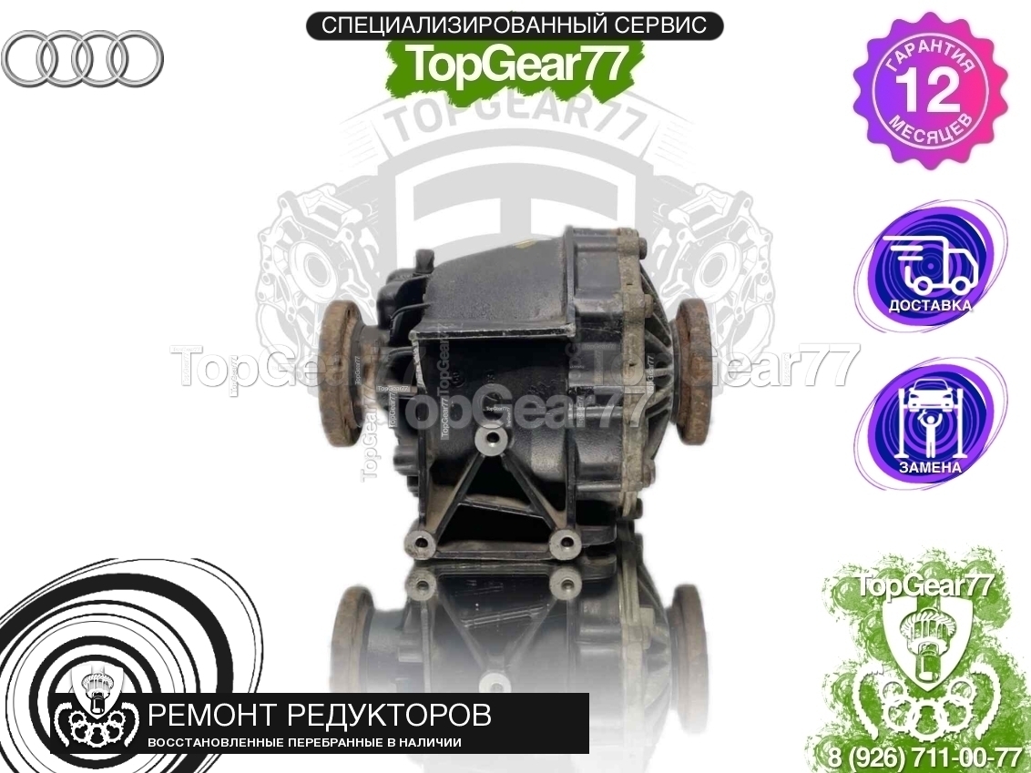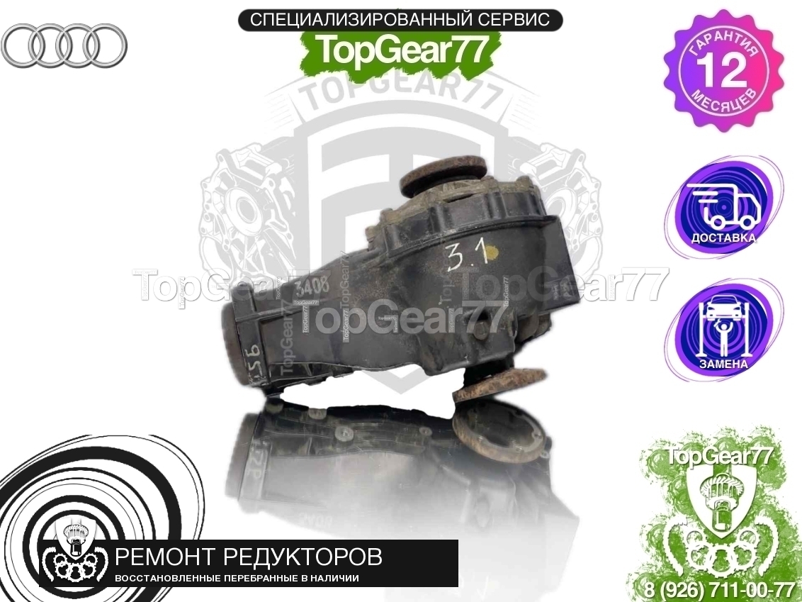 Продается перебранный (восстановленный) задний редуктор (мост) для Audi A4 III B7 2.0i 3.2i 3.0d 6AT 2004-2009, с передаточным числом 31:10 3,1.
