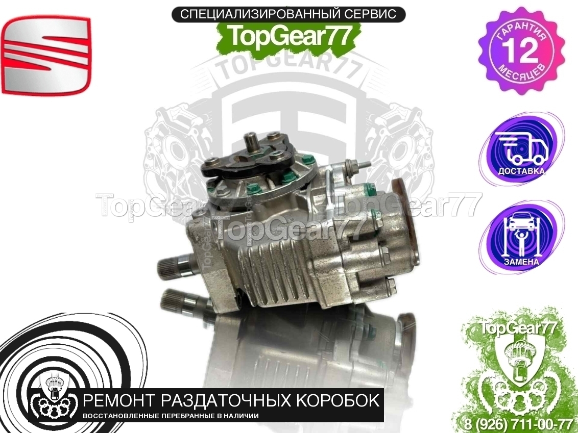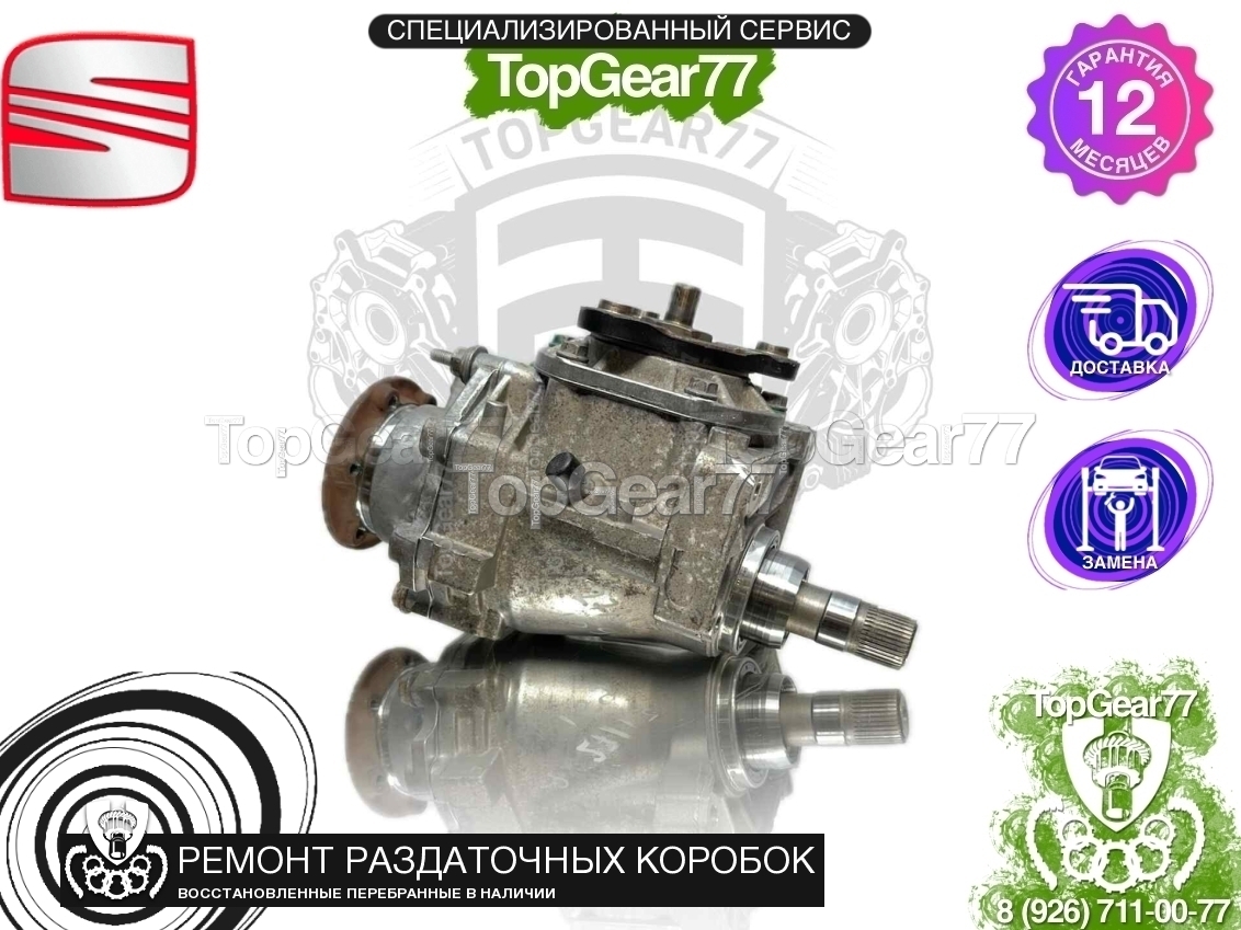 Восстановленная (полностью перебранная) раздаточная коробка (раздатка) для Seat Altea I Рестайлинг 2009-2015. Наружный диаметр соединительного вала с КПП -53,9 мм, внутренний - 47,3 мм, количество зубьев на шлицевом соединении - 30 шт., диаметр внутренней оси - 31 мм..