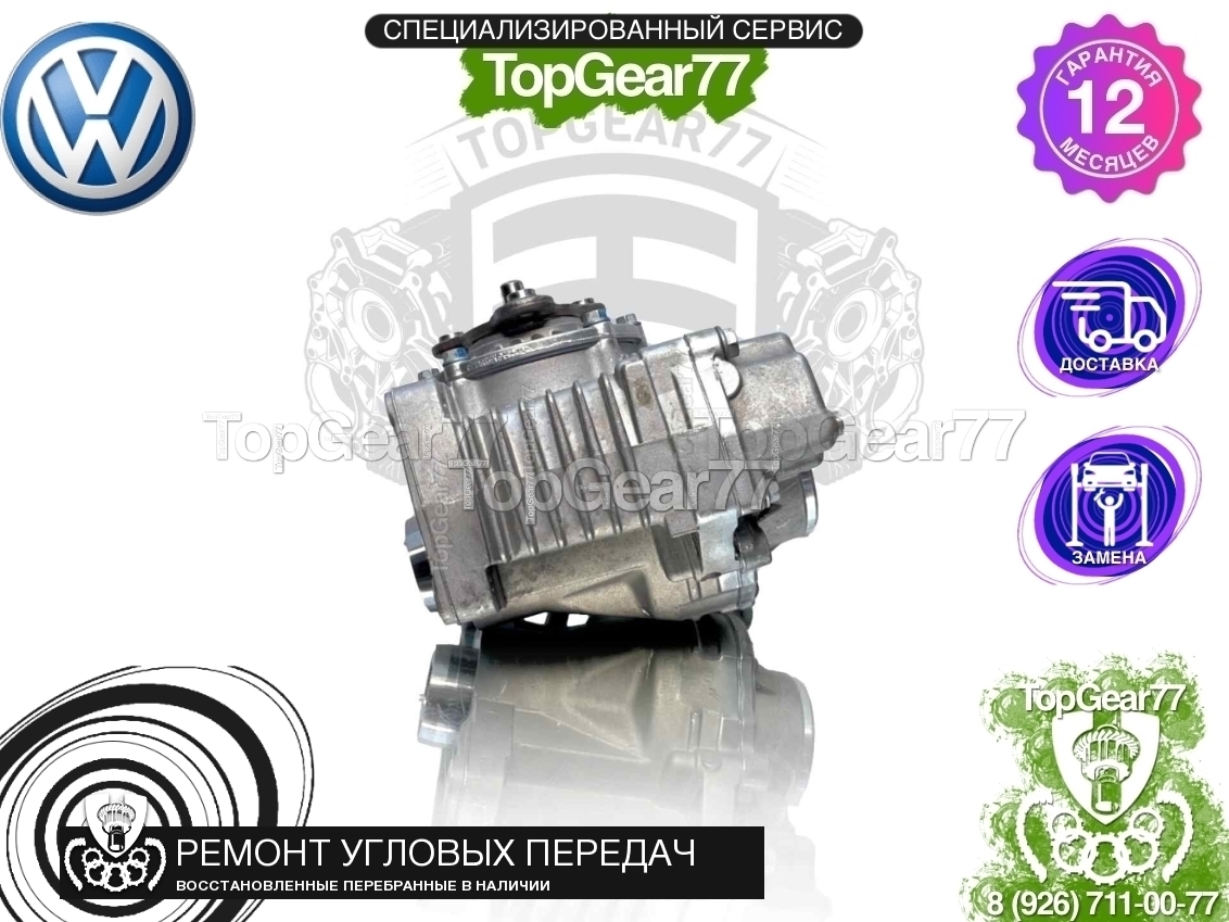 Угловая передача / угловой редуктор Volkswagen Tiguan 1,59 восстановленная (перебранная). Наружный диаметр соединительного вала с КПП - 65 мм, внутренний - 54 мм, количество зубьев на шлицевом соединении - 34 шт.. Продается без внутреннего вала.